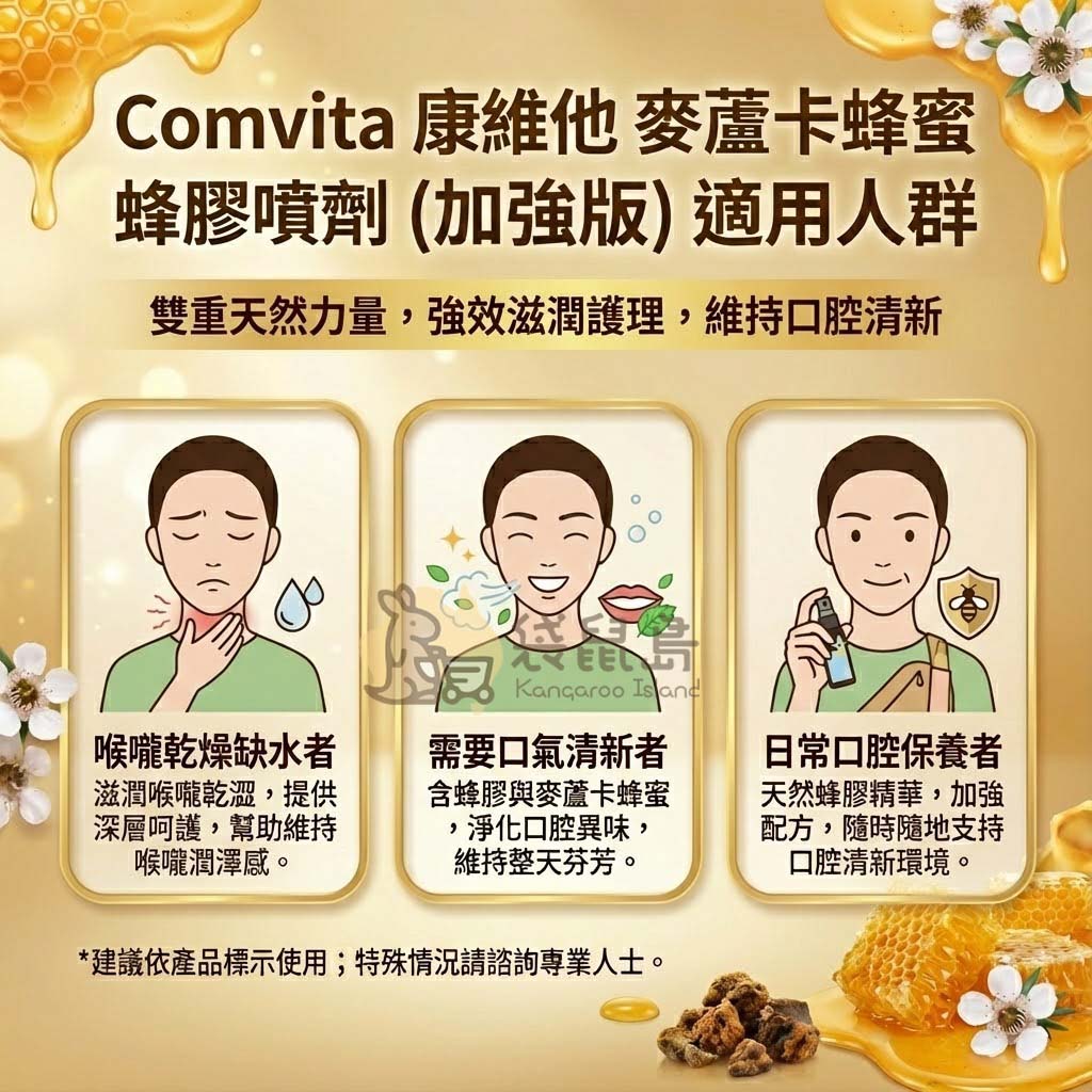 Comvita 康維他 麥蘆卡蜂蜜蜂膠噴劑 (加強版) 🐝 高濃度雙重防護 口氣清新 (20ml)