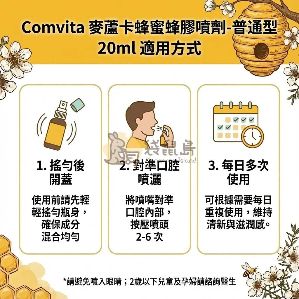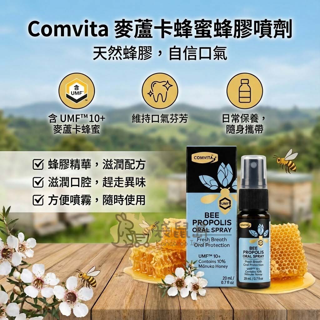 Comvita 康維他 麥蘆卡蜂蜜蜂膠噴劑 ✨ UMF10+ 雙重滋潤 清新口氣 (20ml)