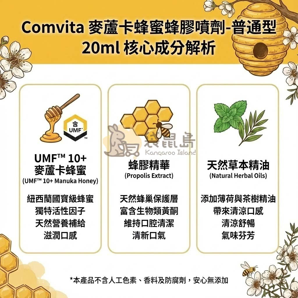 ✨ 為什麼選擇 Comvita 蜂膠噴劑?自然滋養力大解密 🍯 UMF™ 10+ 麥蘆卡蜂蜜 (Manuka Honey)