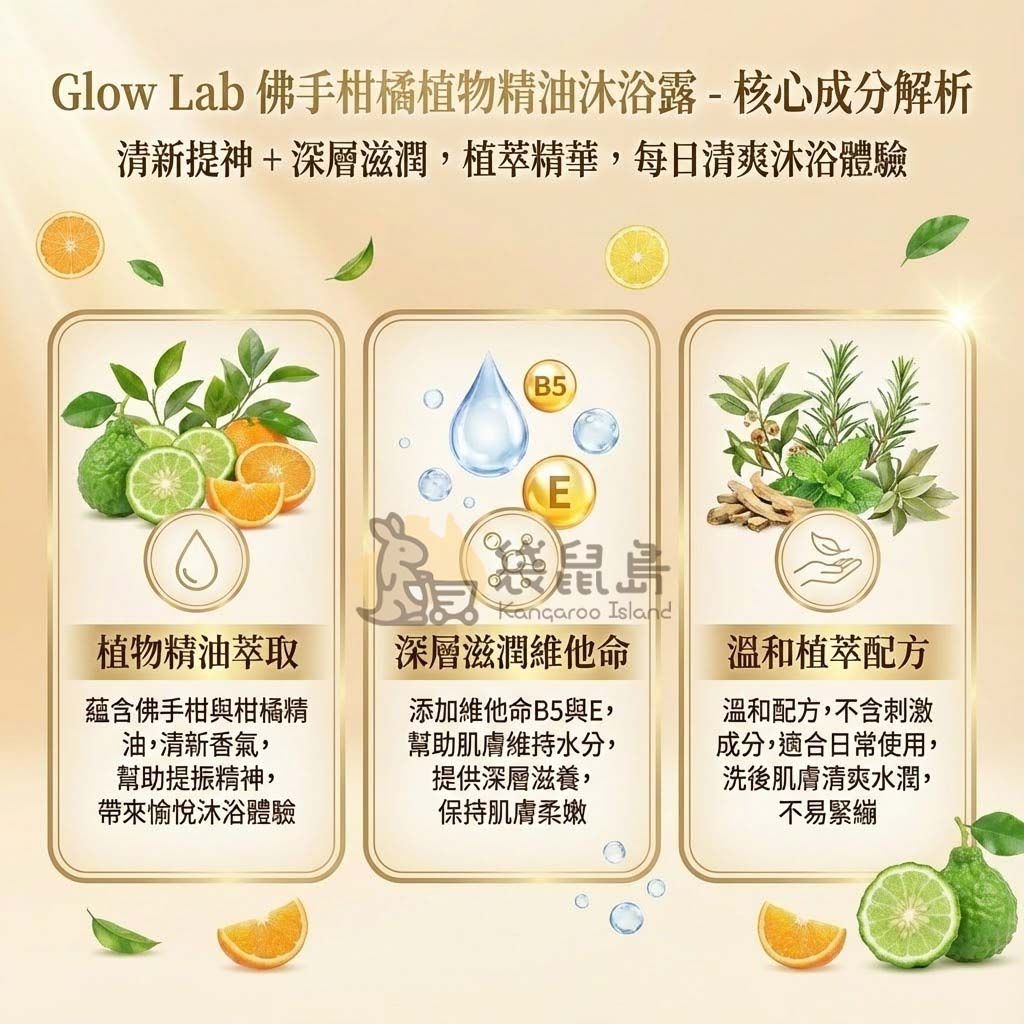 ✨ 為什麼選擇 Glow Lab 佛手柑橘沐浴露?