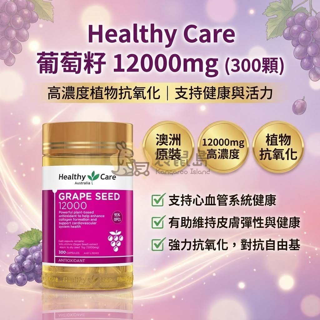 Healthy Care 葡萄籽 12000mg (300粒) 🍇 高單位 OPCs 支持膠原蛋白與循環健康