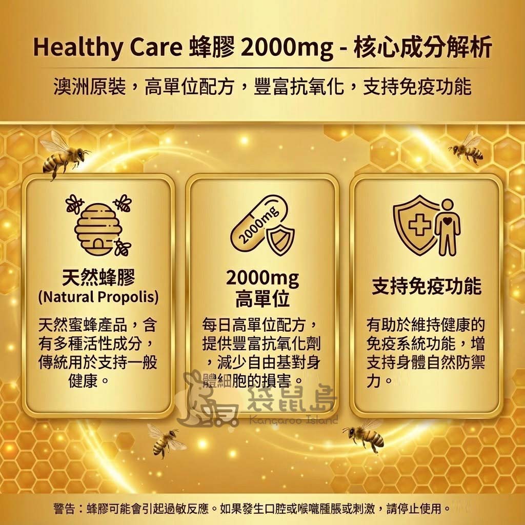 Healthy Care 蜂膠 2000mg (200粒) 🐝 支持免疫系統健康與抗氧化