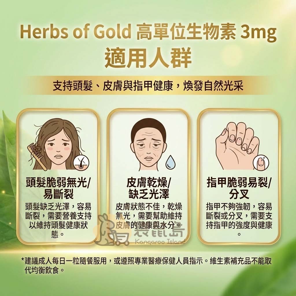 💇♀️ 從頭到腳的精緻細節:Herbs of Gold 高單位生物素 Biotin 3mg