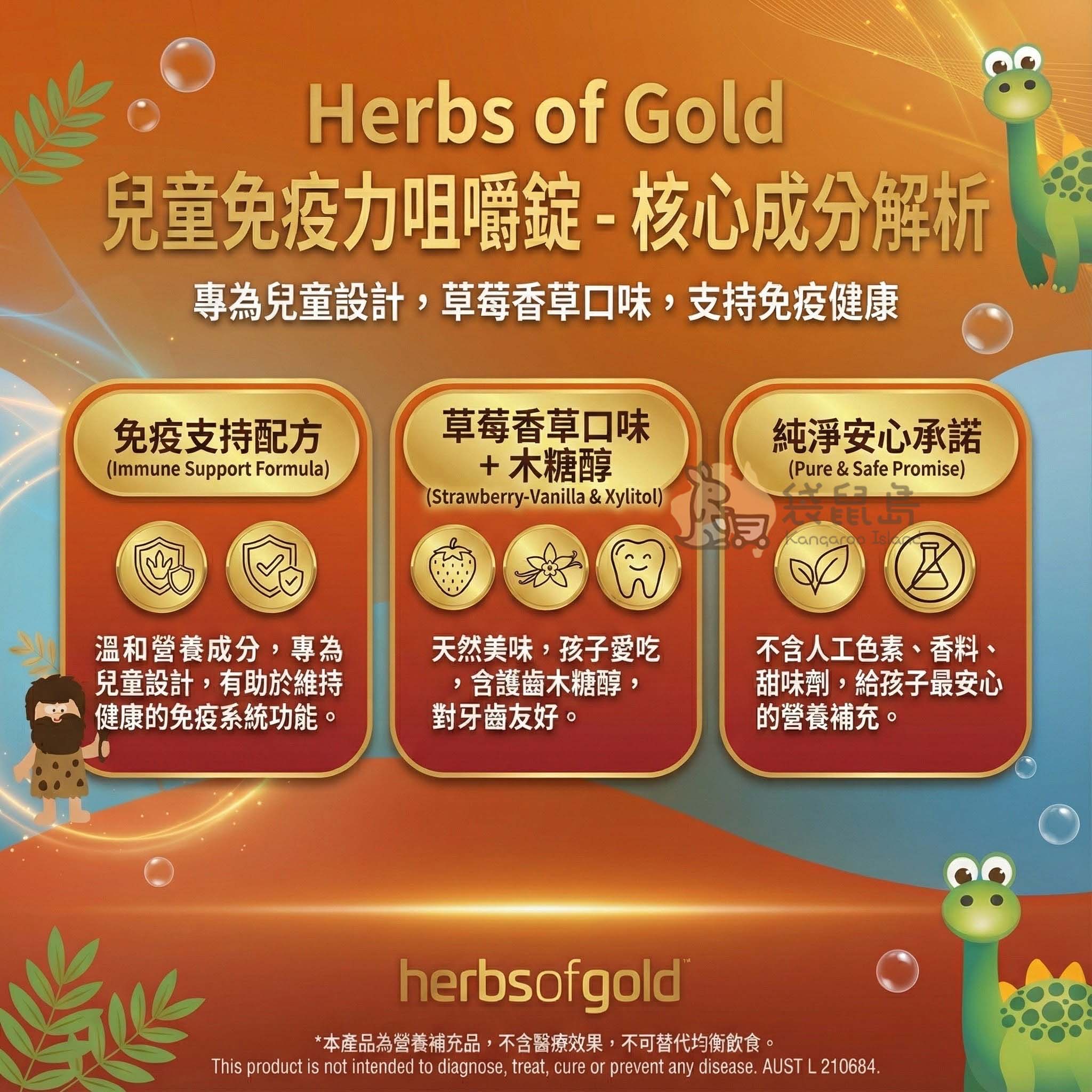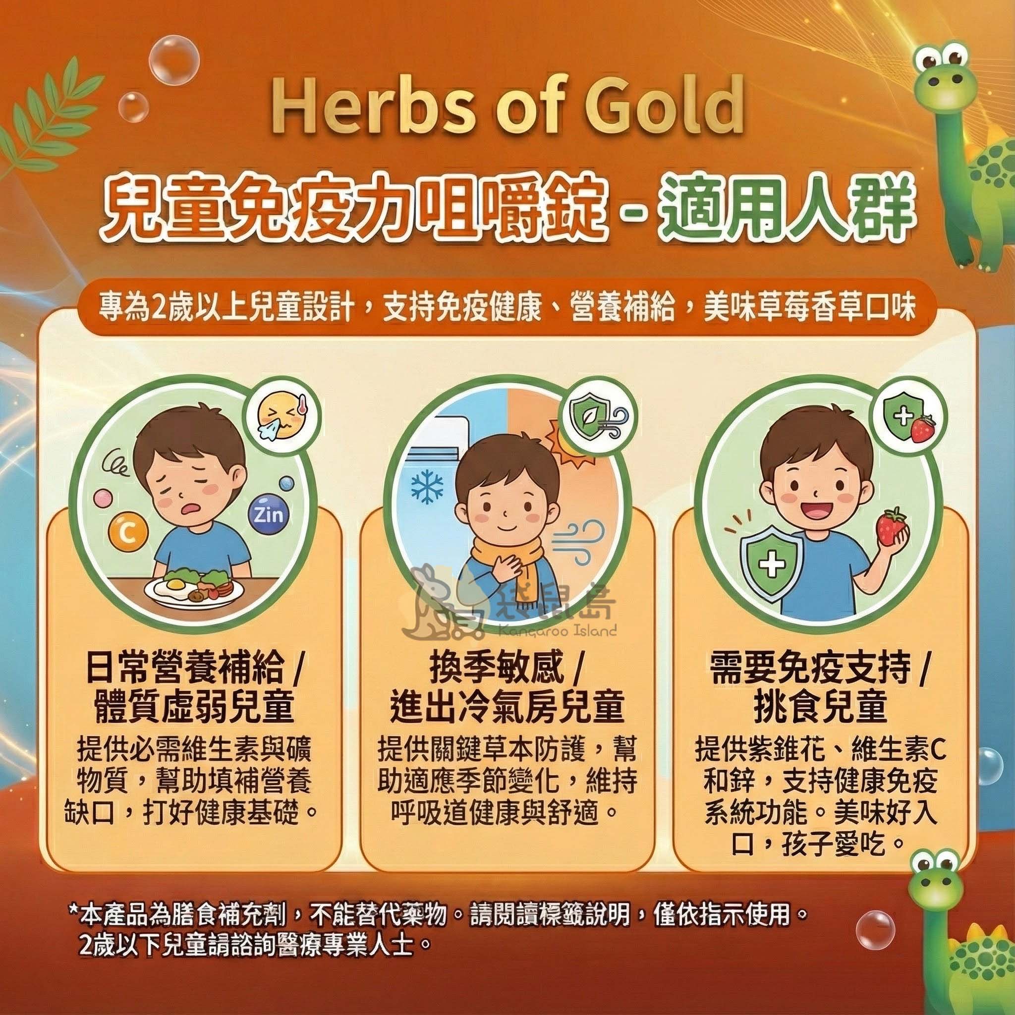 Herbs of Gold 兒童免疫力咀嚼錠 🍓 含紫錐花/維他命C/鋅 (60粒)