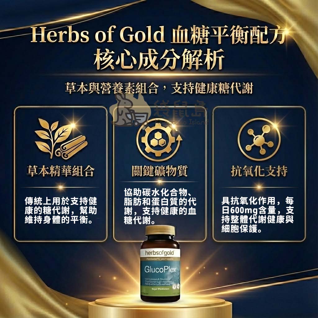Herbs of Gold 血糖平衡配方 GlucoPlex 🍬 含武靴葉/肉桂/鉻 (60粒)