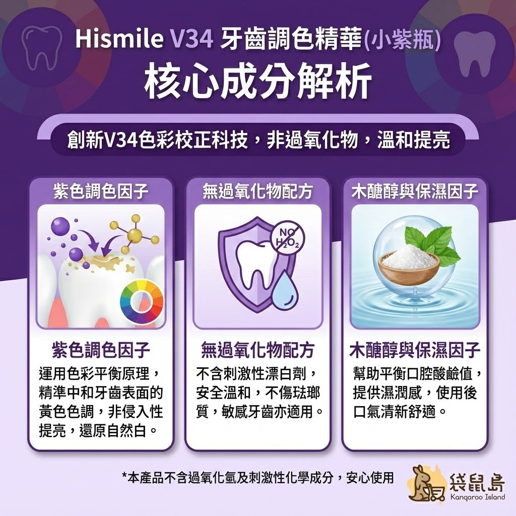 Hismile V34 牙齒調色精華 (小紫瓶) 30ml | 瞬間去黃提亮 溫和不酸軟