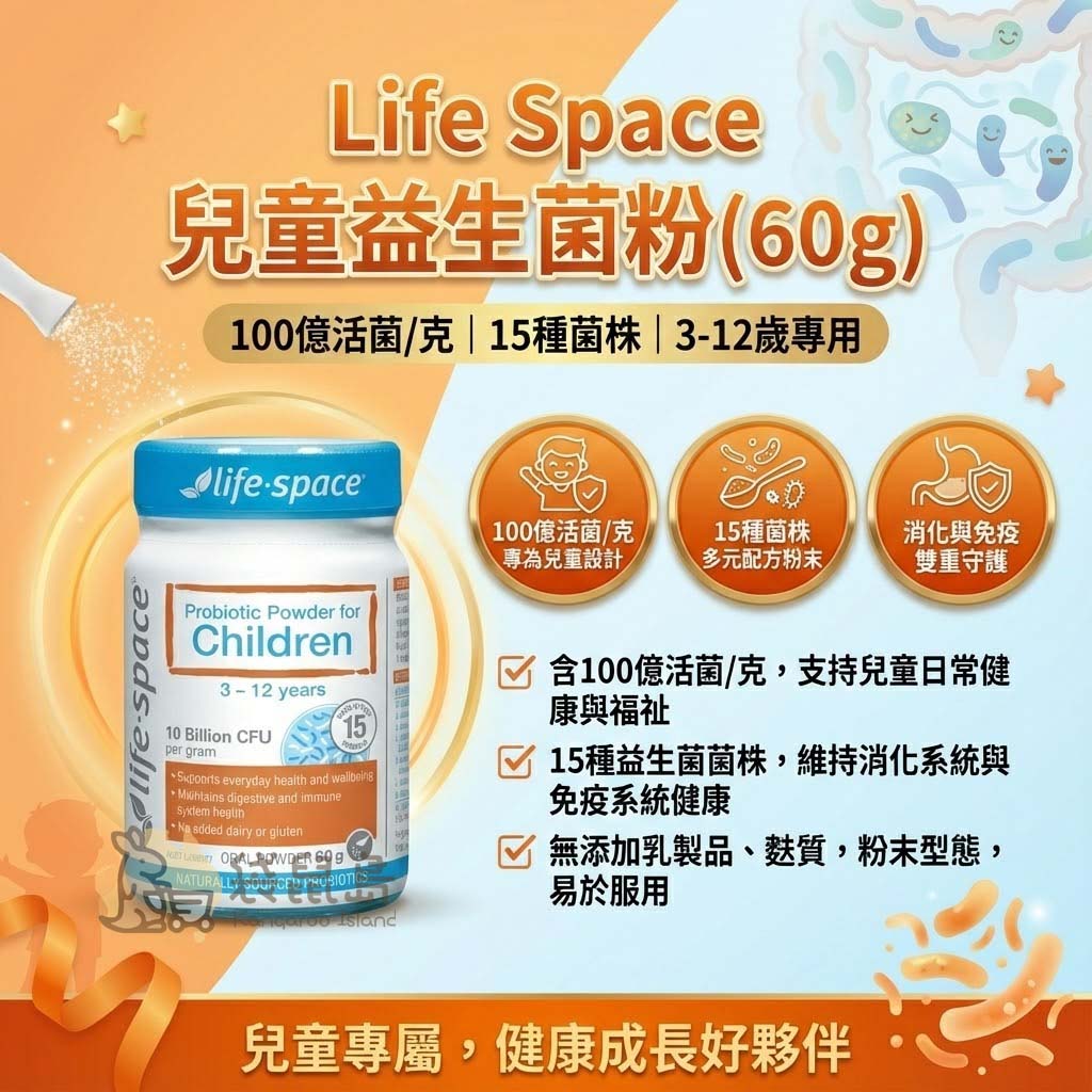 Life Space 兒童益生菌粉 3-12歲 (60g) - Probiotic Powder For Children - 100億活菌 / 調整體質 / 提升保護力