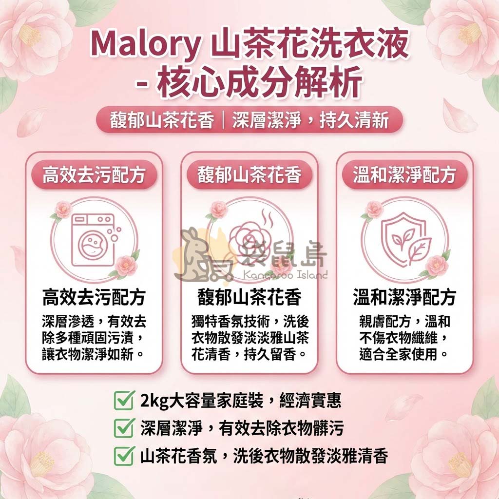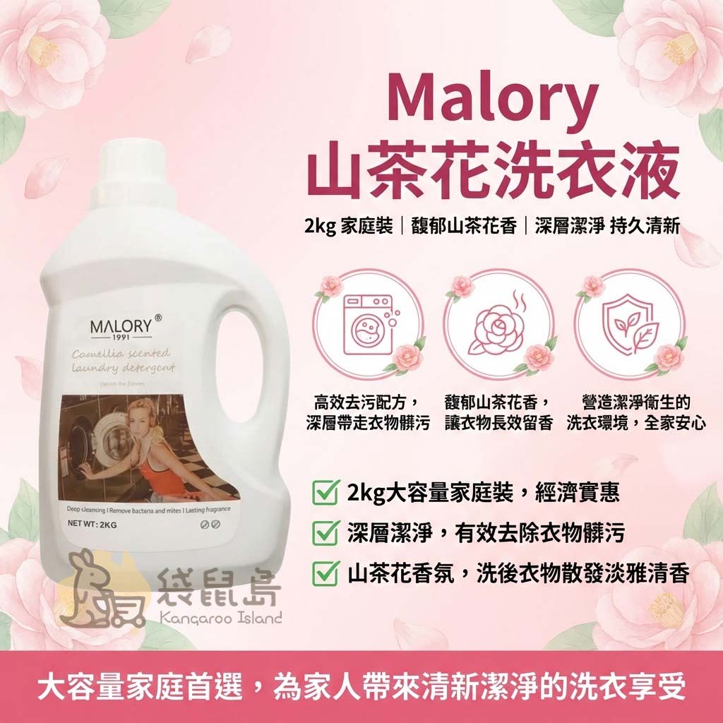 Malory 山茶花洗衣液 ✨ 2kg 大容量家庭裝 / 深層去污、除菌除蟎、長效留香