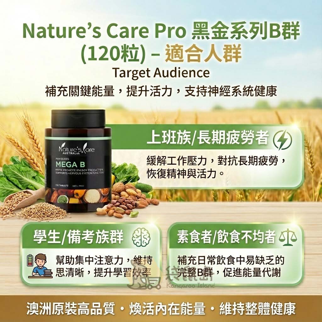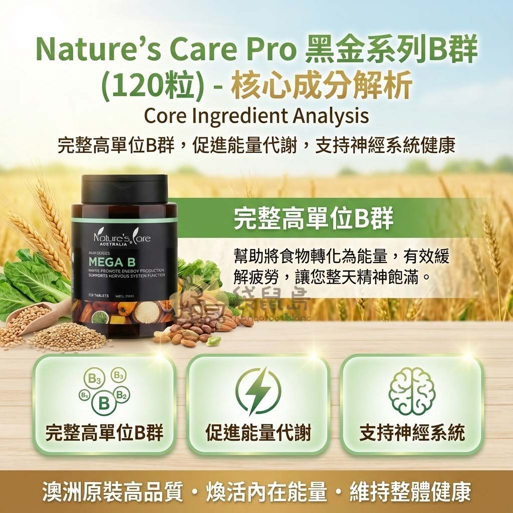 ⚡ Nature's Care Pro 黑金系列 Mega B 高單位B群能量錠 (120粒)