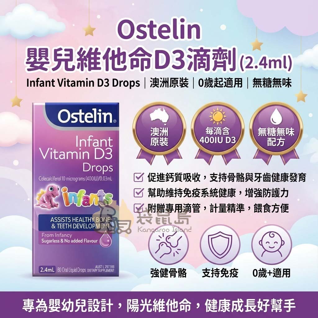 👶 澳洲醫院指定!Ostelin 嬰兒維他命D3滴劑 (Infant Vitamin D3 Drops) 2.4ml