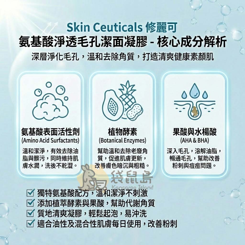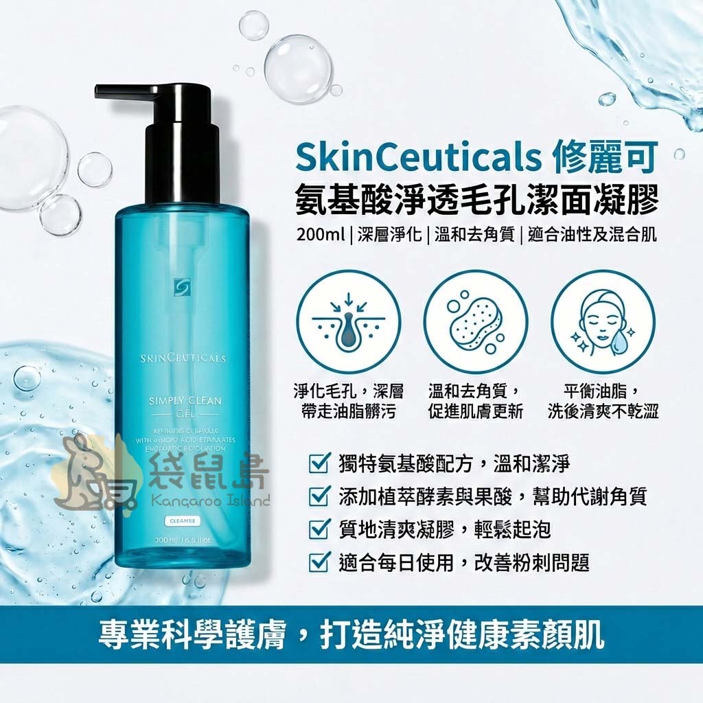 打造純淨健康的素顏肌,從專業科學的深層清潔開始!🧪 Skin Ceuticals 修麗可 氨基酸淨透毛孔潔面凝膠 (Simply Clean Gel) 專為油性及混合性肌膚研發。採用獨特的氨基酸配方結合活性植萃精華,不僅能徹底帶走油垢與殘妝,更能在洗臉同時溫和代謝老廢角質,讓毛孔重新呼吸,煥發細緻水潤光澤!✨🧼