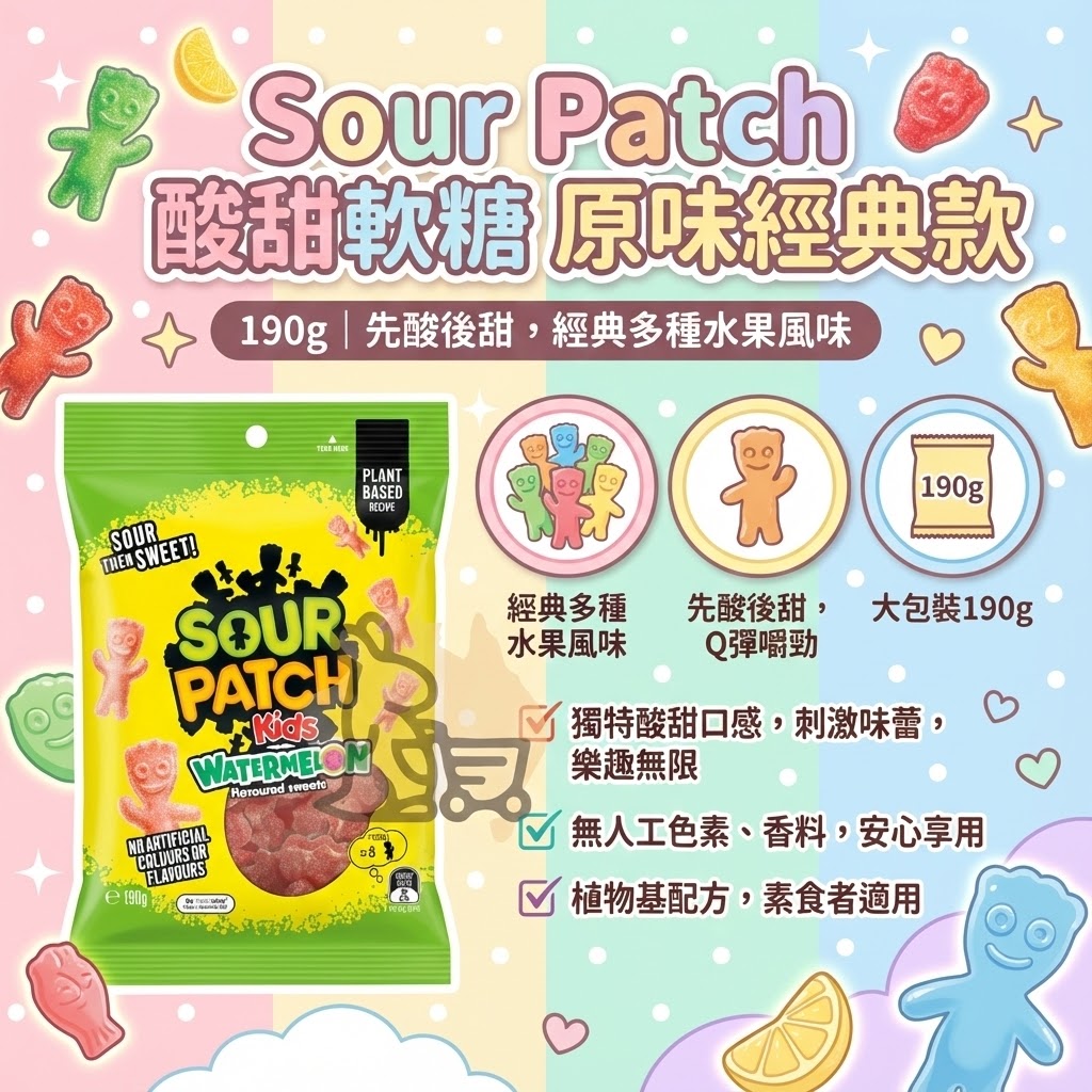 🏆 先酸後甜,整人又療癒!Sour Patch Kids 酸甜軟糖 (澳洲植物基版)
