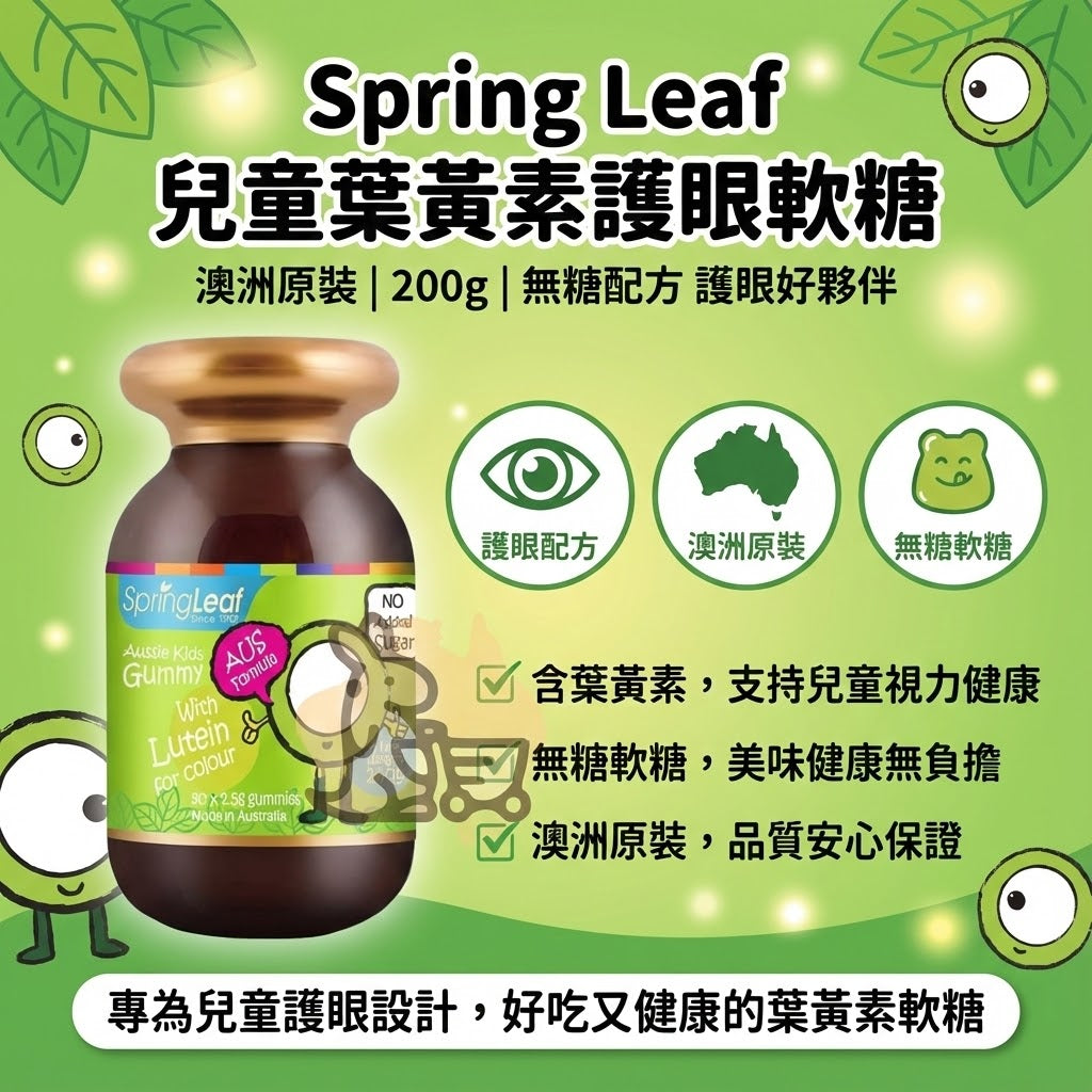 Spring Leaf 綠芙兒童葉黃素護眼軟糖 (200g) | 無糖配方 抵禦藍光 | 澳洲原裝