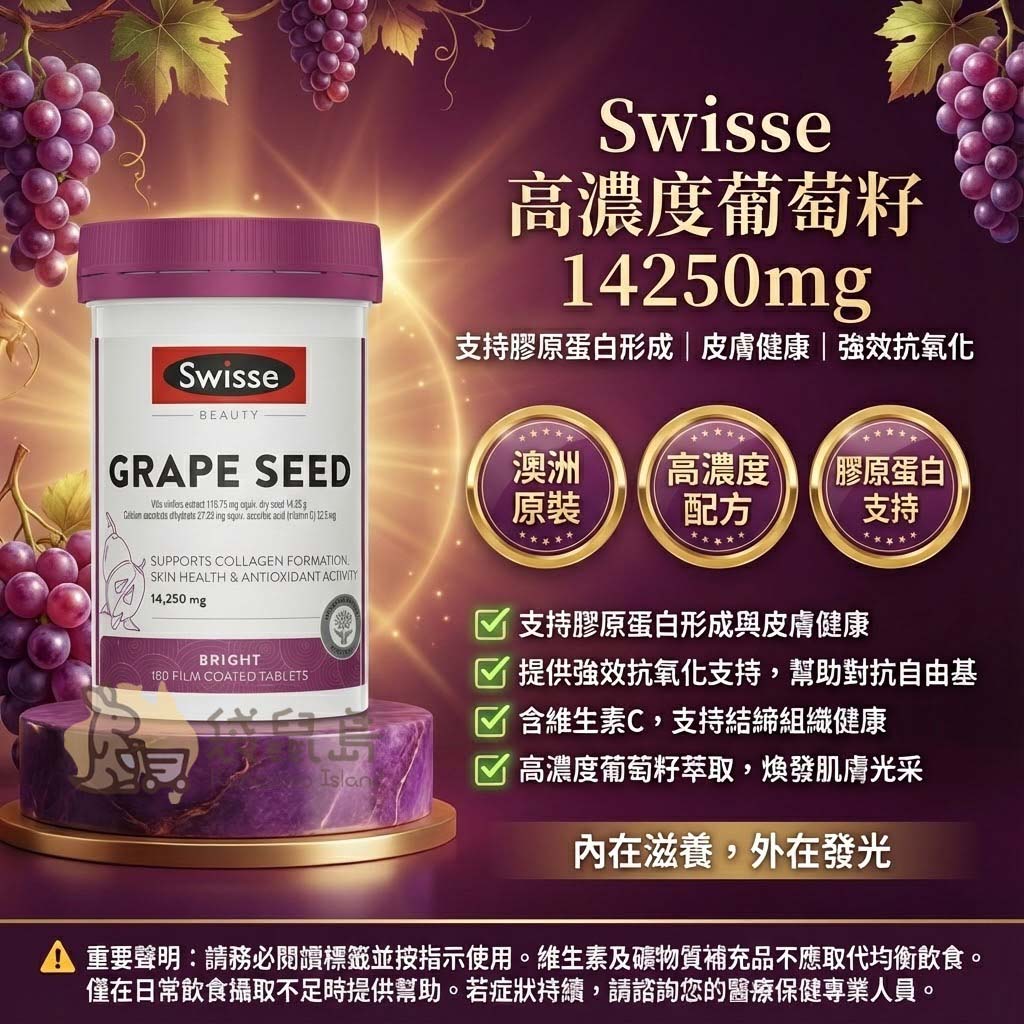 Swisse 高濃度葡萄籽精華 14,250mg 🍇 抗氧化支持與美妍守護 (180粒/300粒)