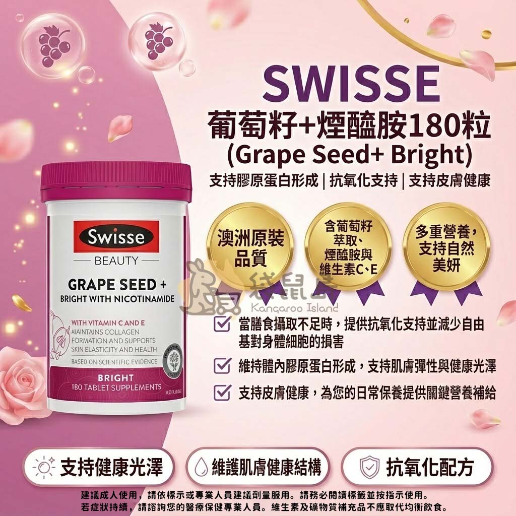 Swisse 葡萄籽煙醯胺美妍片 ✨ 亮白透采與彈性支持 | 180粒大容量 (澳洲原裝)