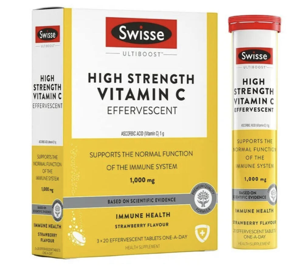 Swisse 高濃度維他命 C 發泡錠 🍓 1000mg 支持防護與抗氧化 (60粒)
