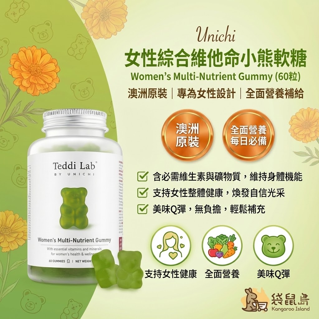 Unichi 女性綜合維他命小熊軟糖 (60粒) | 每日營養補給 無糖配方 | 袋鼠島 澳洲代購